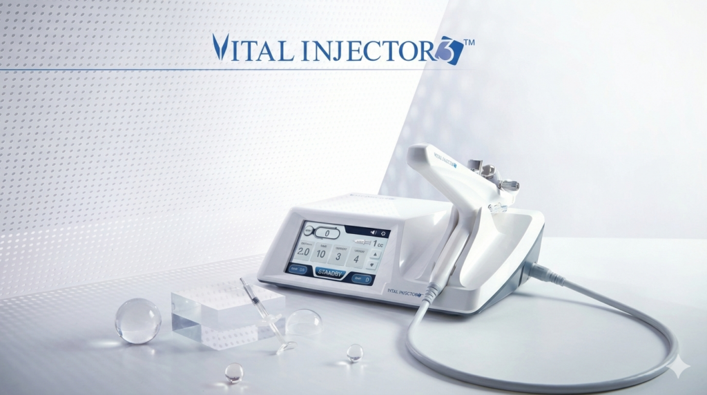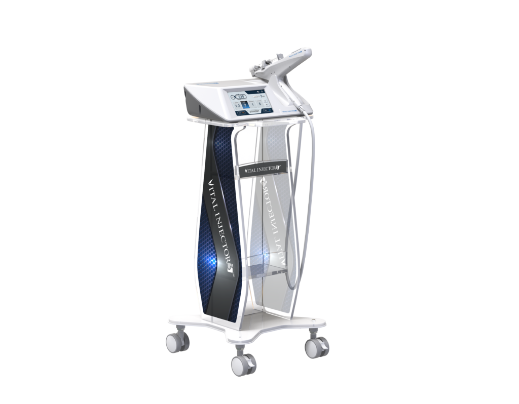 מערכת Vital Injector 3 מסייעת לרופא בהזרקה מדוייקת, מהירה, חסכונית ובטוחה יותר בטיפולים משטחיים לשיפור מרקם העור, הצערת מראה הפנים ומניעת נשירה / עידוד צמיחת שיער בראש.